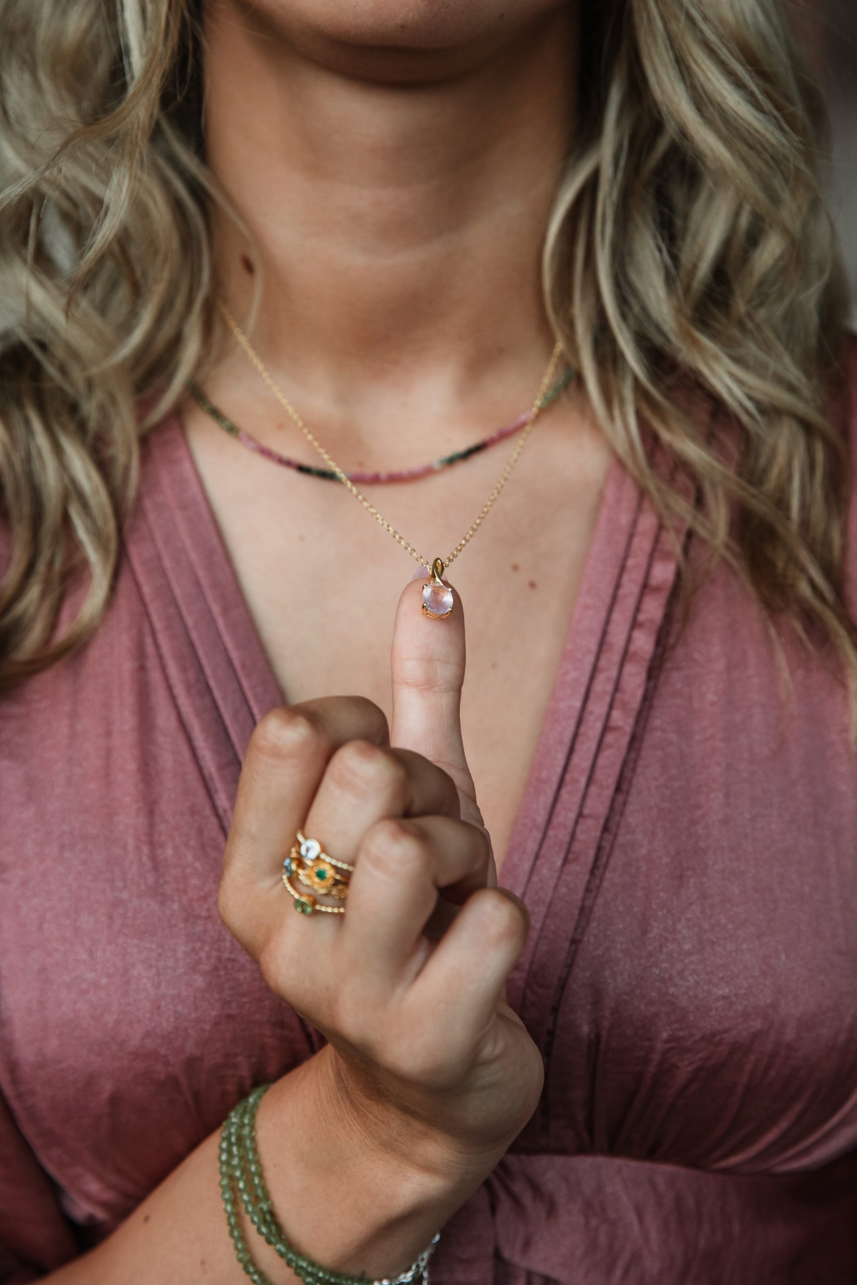 In de zomer draag ik mijn ringen minder vaak. Als ik ga zwemmen doe ik ze altijd af, en omdat ik ze ook niet omdoe tijdens het insmeren met zonnebrand (keer vier in mijn geval), vergeet ik ze daarna soms gewoon weer om te doen. Misschien is dat ook wel het mooie: in de zomer draait het voor mij meer om gemak en comfort, en kies ik vaker voor één opvallend sieraad in plaats van veel tegelijk.