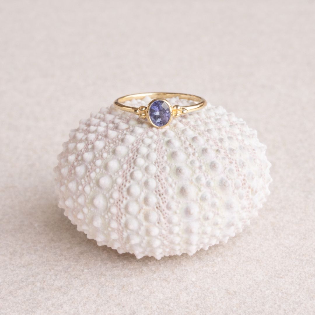 De diepblauwe, paarse gloed van tanzaniet maakt deze ring bijzonder opvallend. Het is een kleur die intens aanwezig is en daardoor zowel bij neutrale outfits als bij rijkere, donkerdere tinten prachtig tot zijn recht komt.